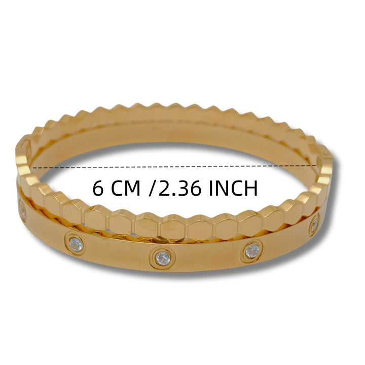 Enhance your look with these gold-tone bangles, featuring a sleek stone-studded design and a stylish textured piece. Perfect for any occasion.