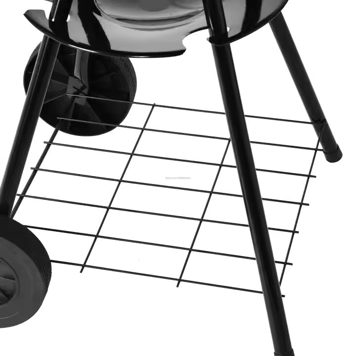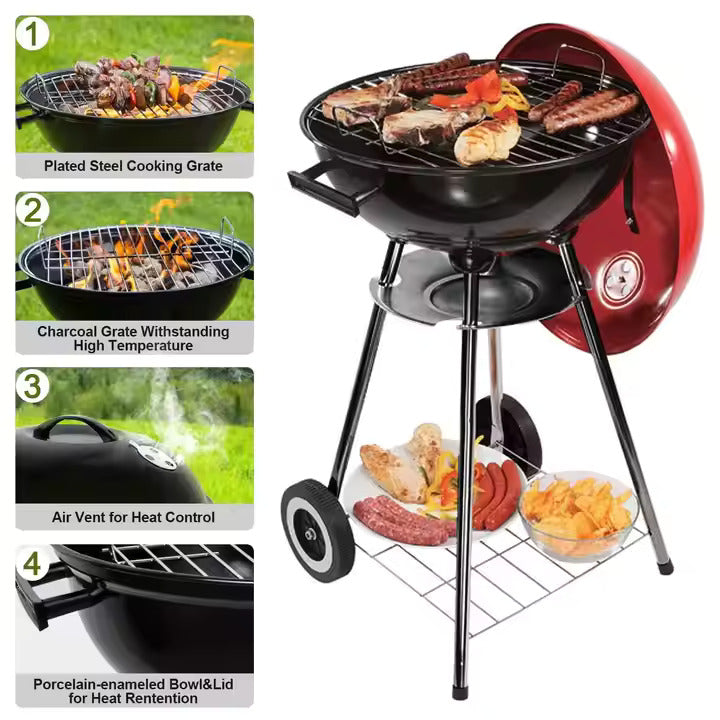 Hinged lid with safety lock, large ash catcher for easy cleaning, and sturdy wheels for hassle-free transport.