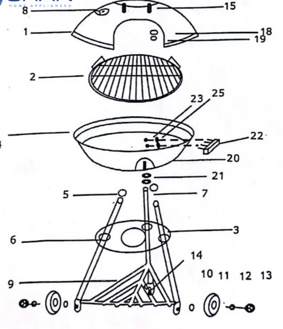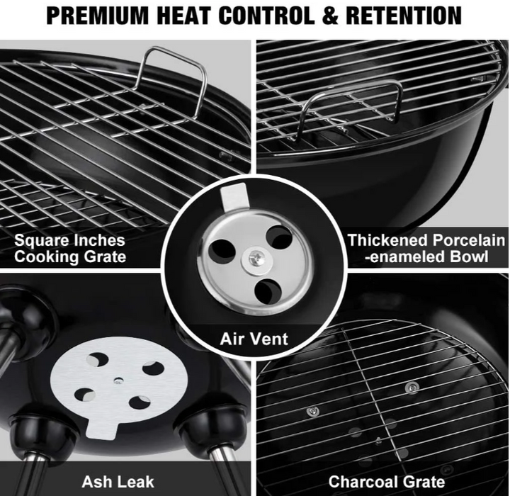 22.5-inch grill with 398 sq. in. surface—perfect for 4–6 people. Includes a warming rack and easy-lift grate clips.