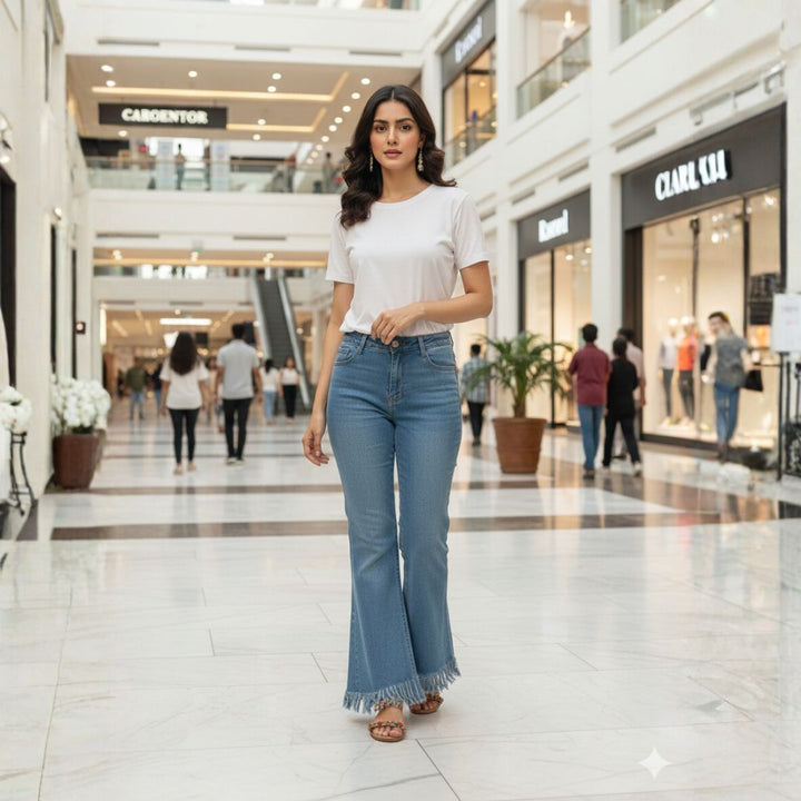 JN-0014 High-Rise Flared Fringe Hem Jeans